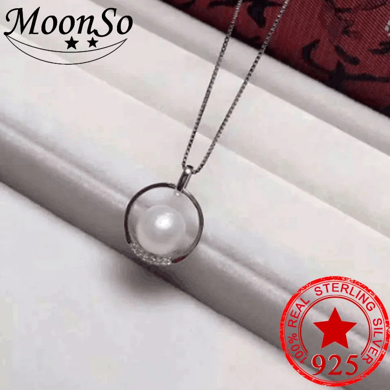 BEST QUALITY Moonso Fresh Water Pearl 925 Silver Necklaces & Pendants Women Jewelry Elegant and Fashion CZ 2016
