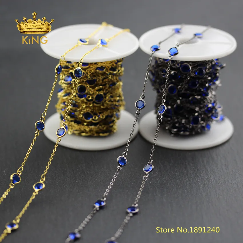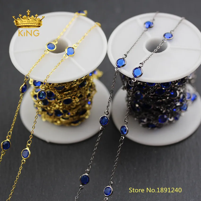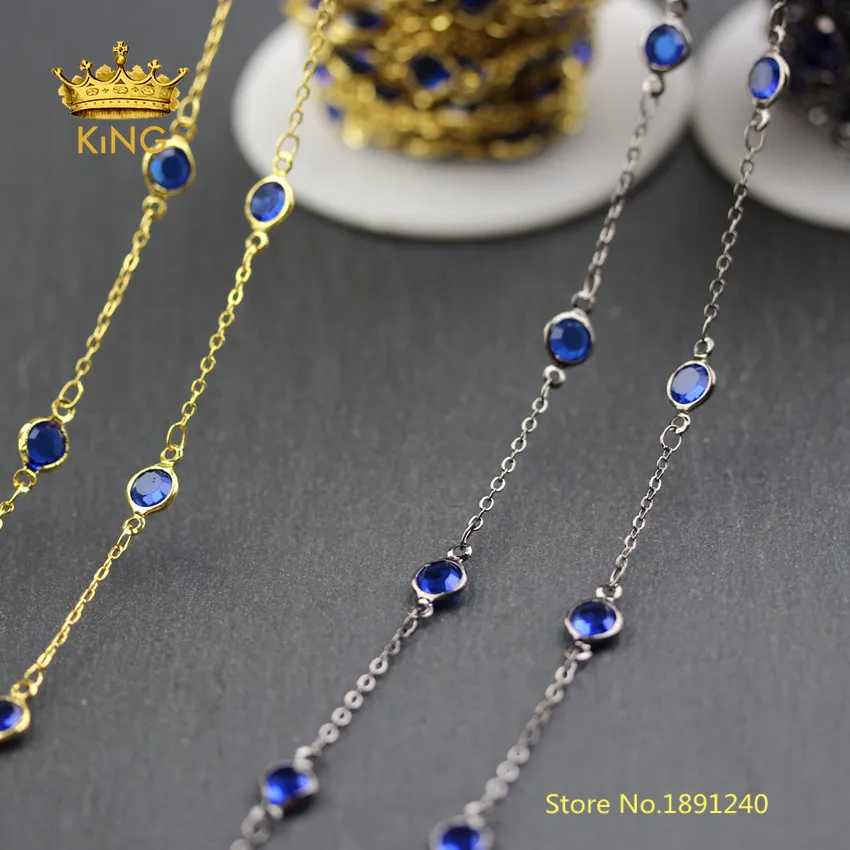 Best Quality 5meters Transparent Dark Blue Glass in Gunmetal/Gold Plating Copper Faceted Coin Glass Chains Fashi