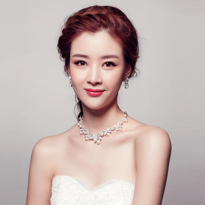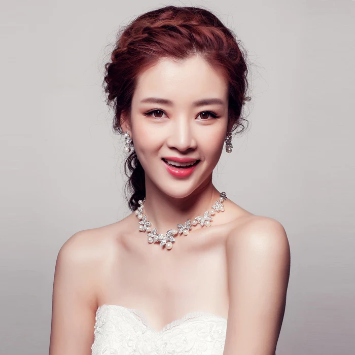 Best Quality Created pearl flowers dream Korean Necklace + earrings Butterfly jewelry Sets married bride jewelry