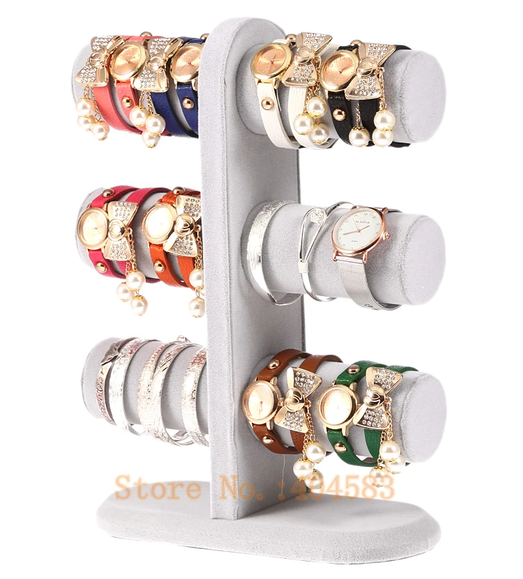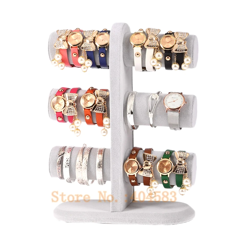 BEST QUALITY Fashion Gray velvet bracelet bangle watch display stand holder rack tabletop showstand