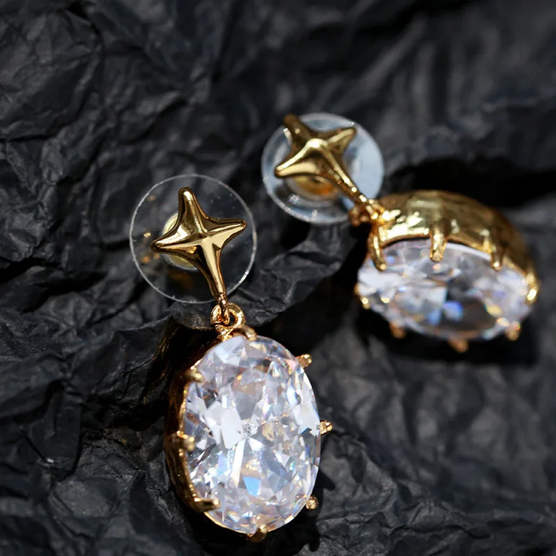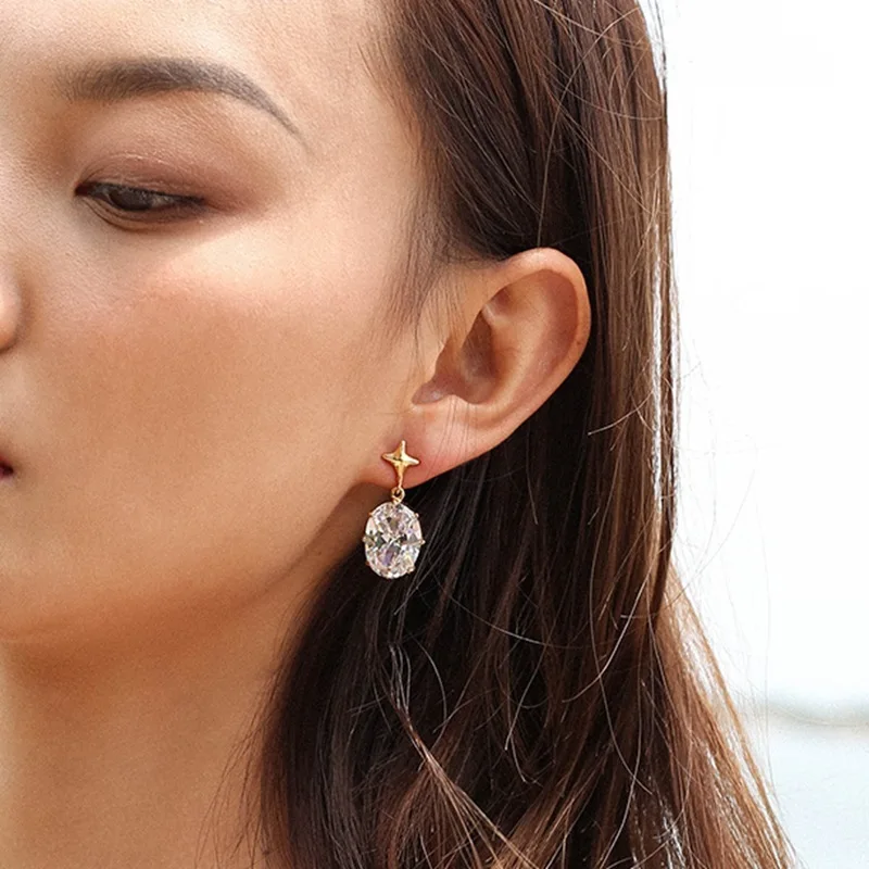 stars big Natural crystal zircon cz earrings for women design style Hanging Dangle long Drop Earrin