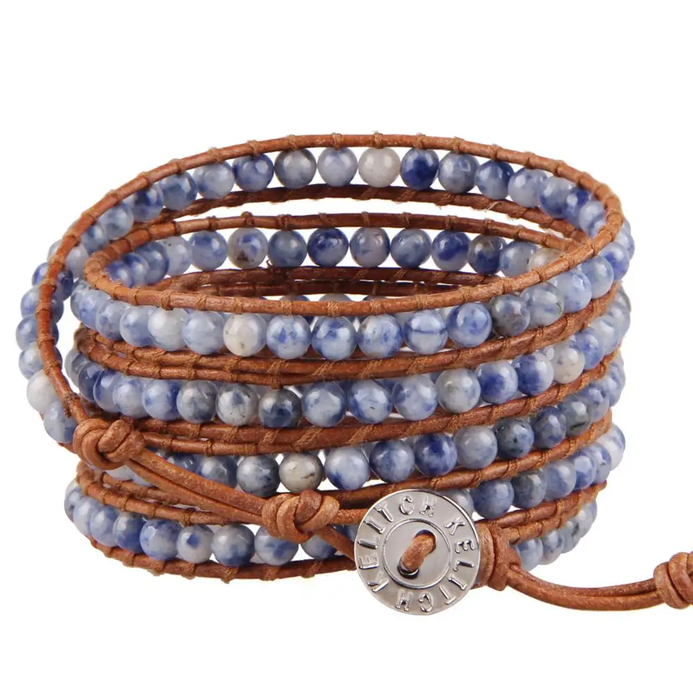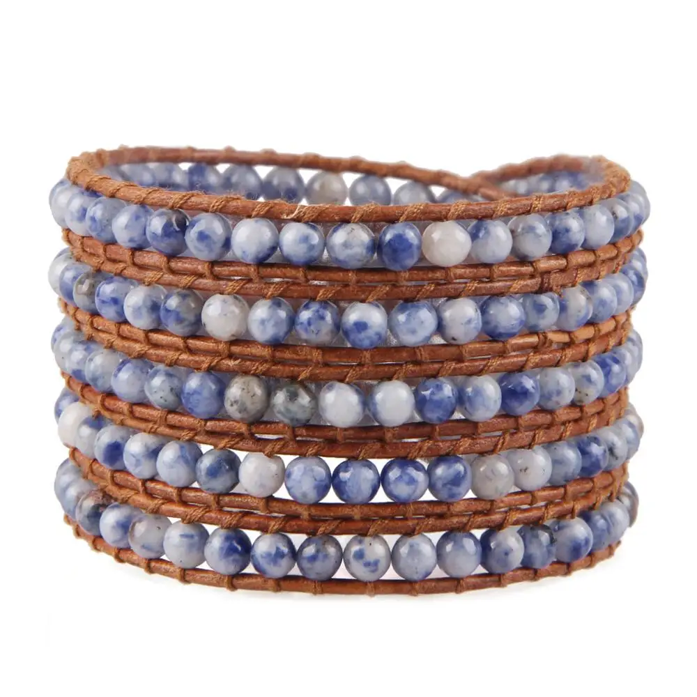 ORIGINAL 2020 New Fashion Natural Stones Sodalite Coral Beaded Wrap Bracelets Leather Bracelet with leather