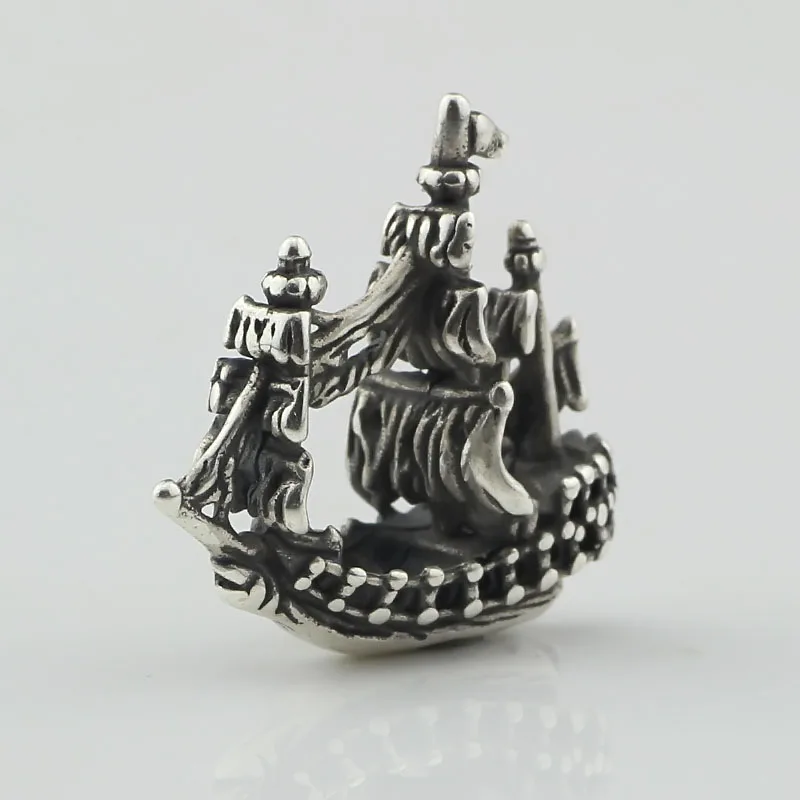 Genuine 925 Sterling Silver Pirate ship ghost ship Charm Bead Fit European Troll Bracelet&Necklace