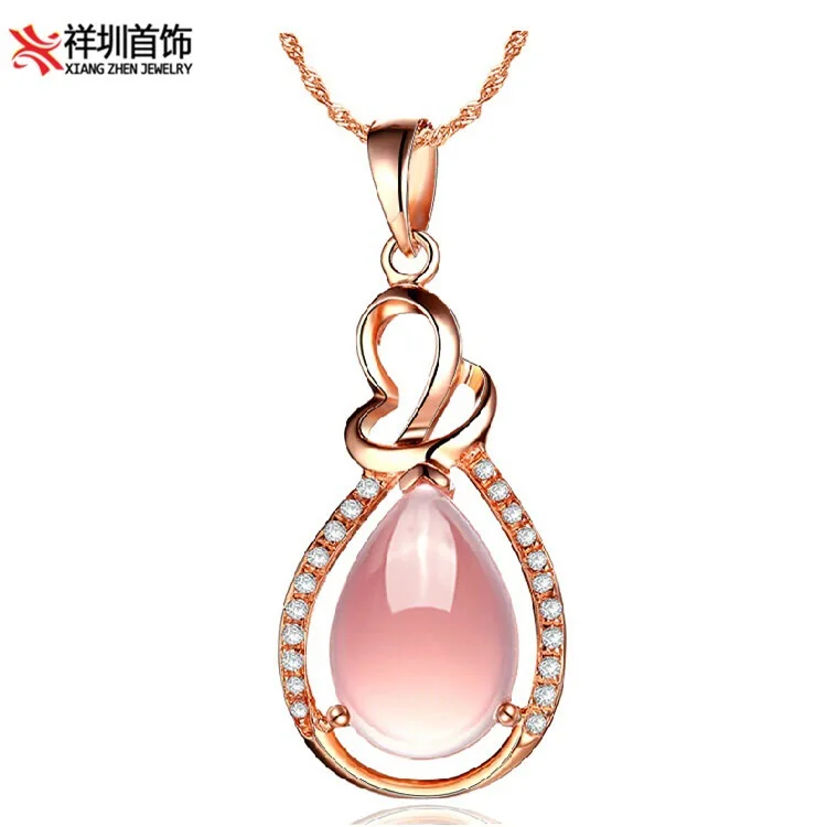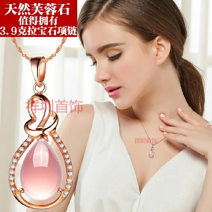 Natural semi-precious stones High quality Pink crystal Hibiscus women Jewelry gold necklace water d