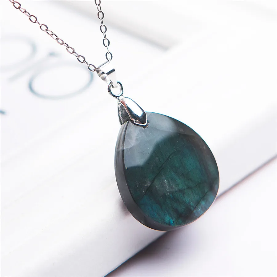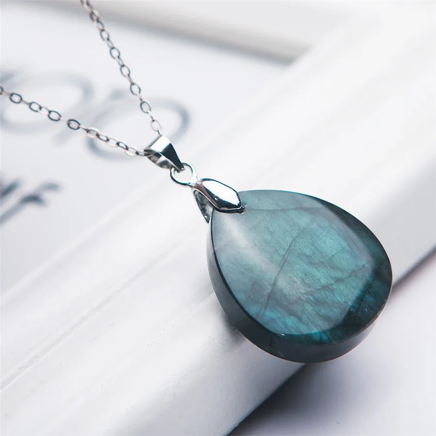 Necklace Pendant Natural Gem Stone Labradorite Pendant For Women Water Drop Shaped Trendy Crystal N