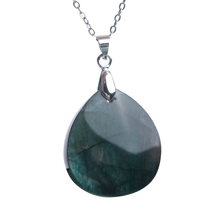 HOT SALE Necklace Pendant Natural Gem Stone Labradorite Pendant For Women Water Drop Shaped Trendy Crystal N