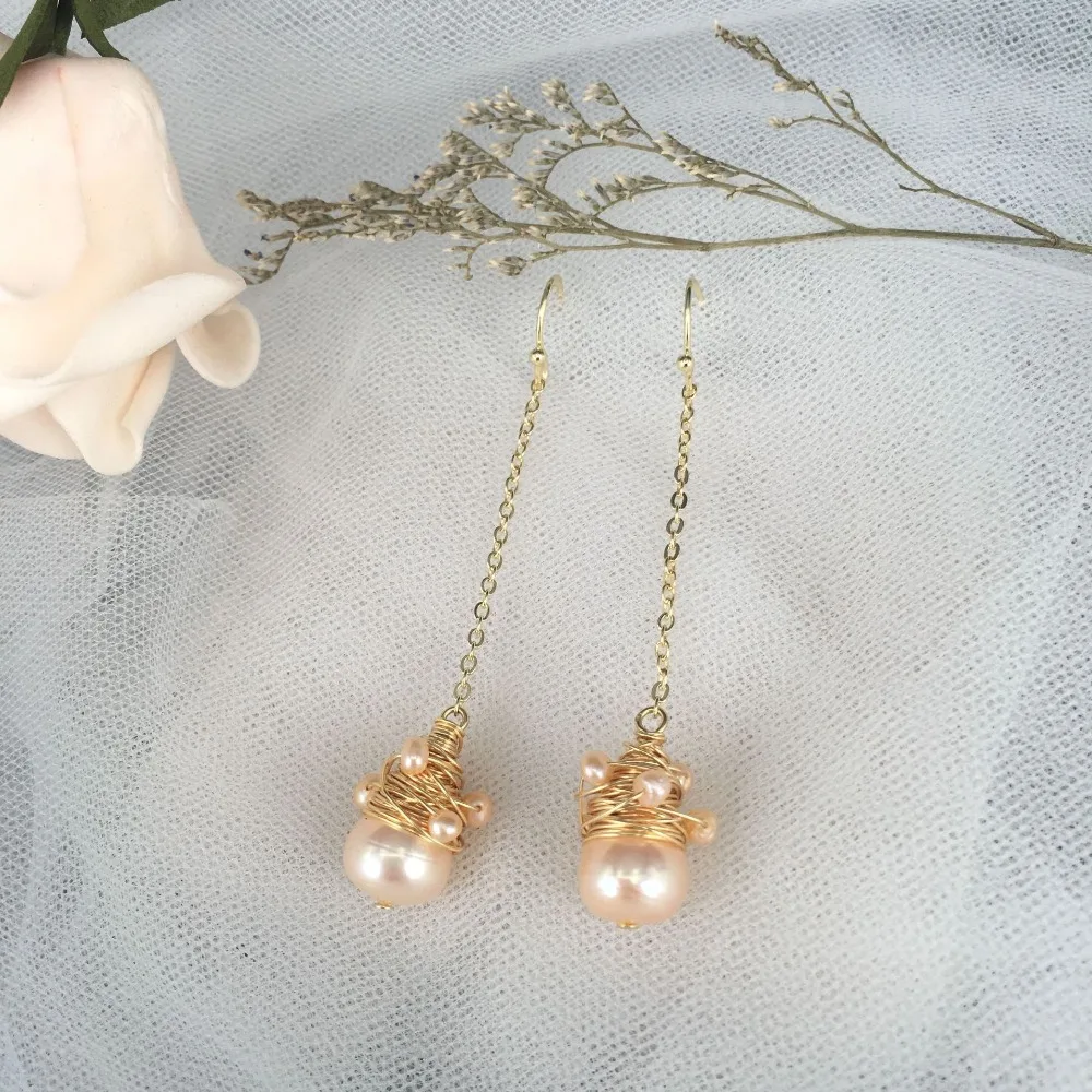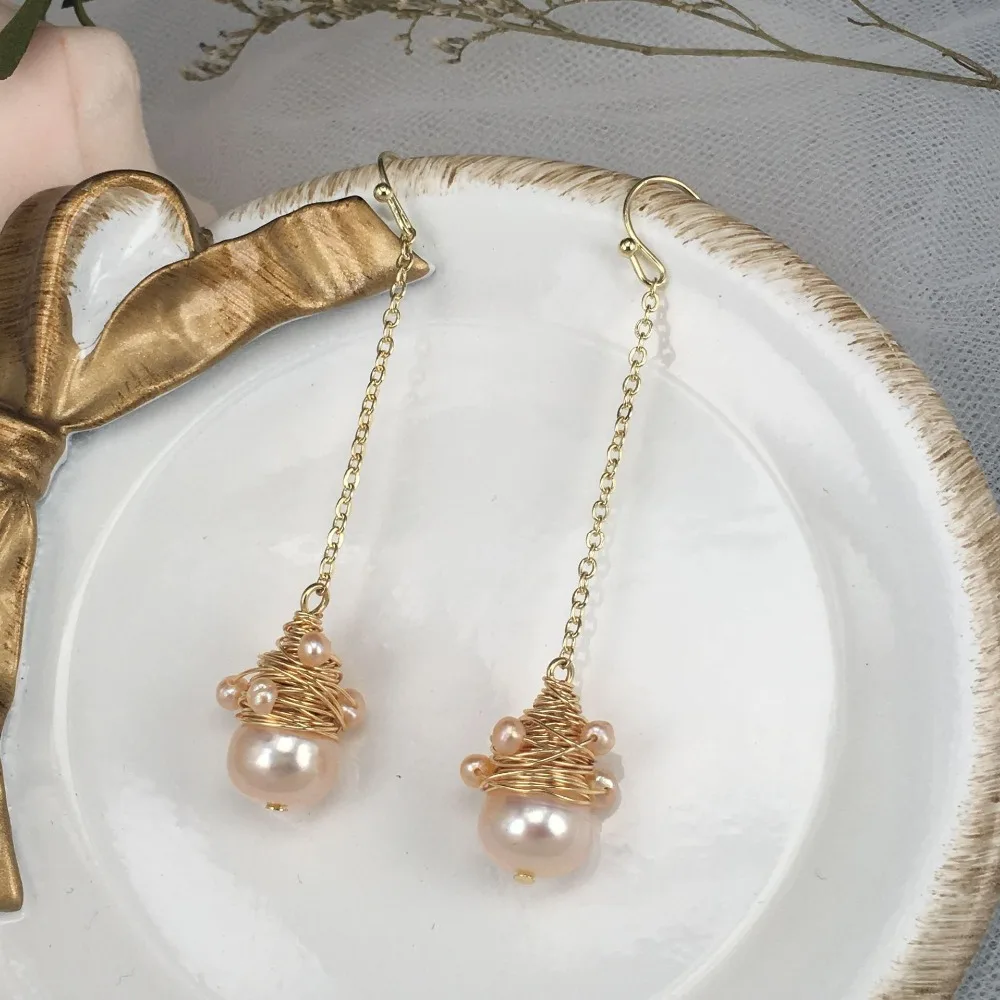 HIGH QUALITY Handmade Natural Freshwater Pearl Hanging Korean Earrings Wild Fashion Gold Jewelry Pendientes Acce