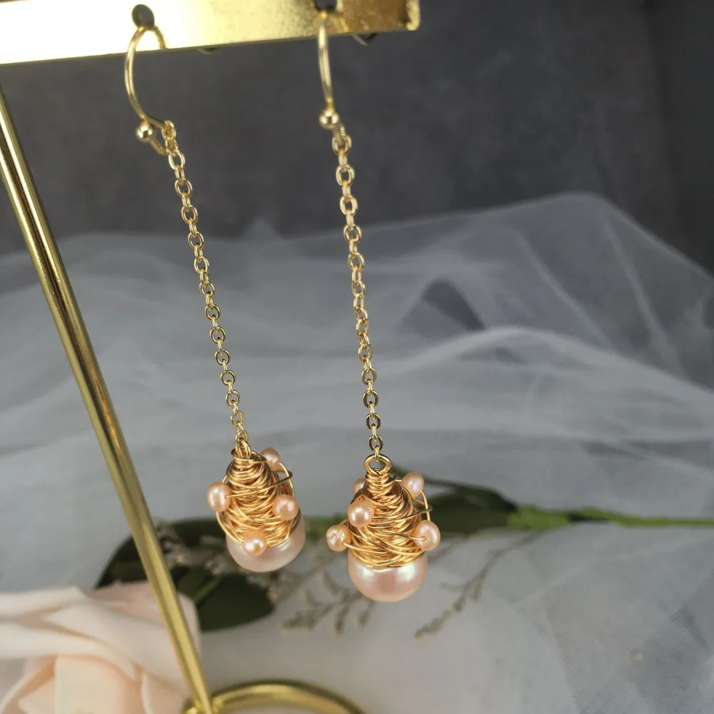 Handmade Natural Freshwater Pearl Hanging Korean Earrings Wild Fashion Gold Jewelry Pendientes Acce