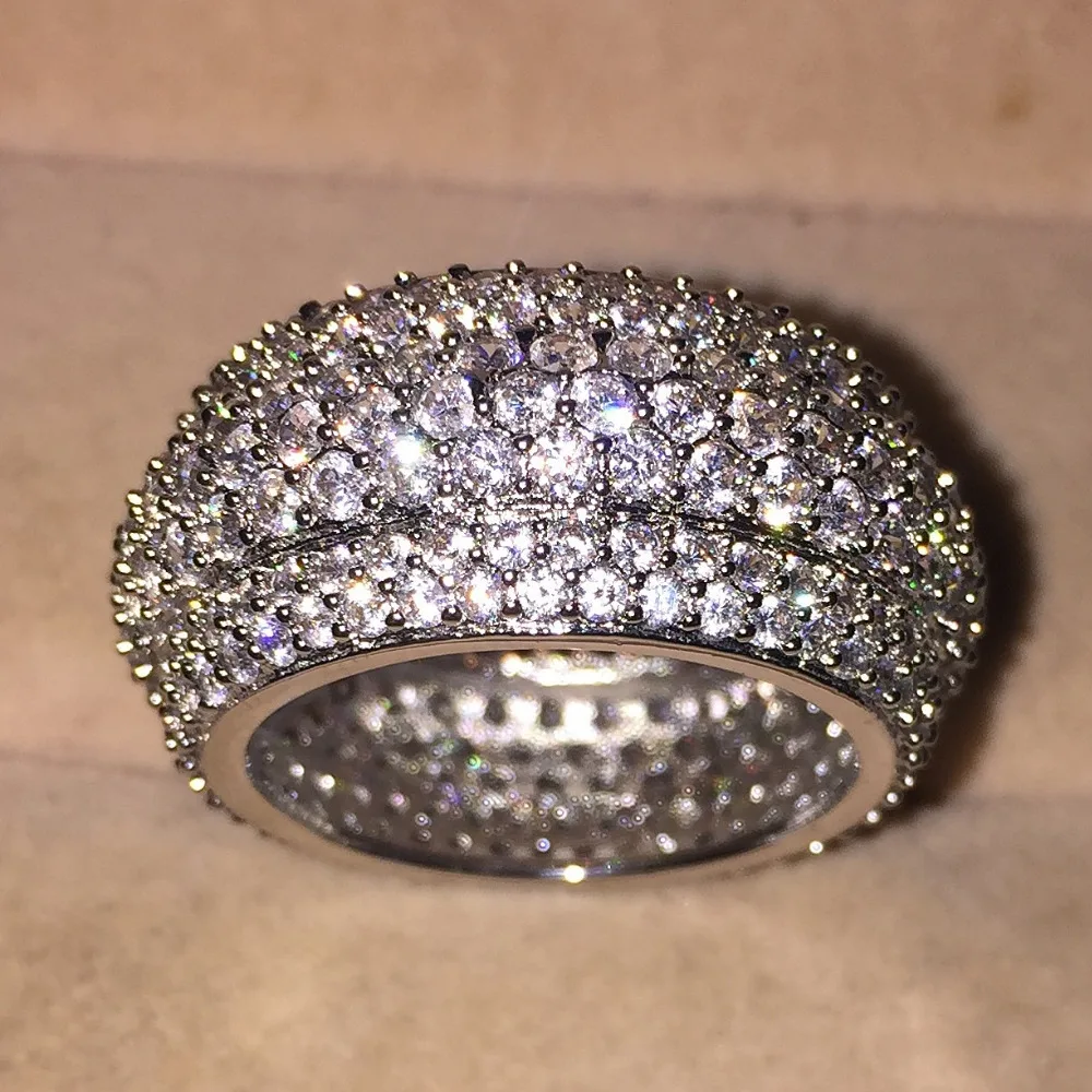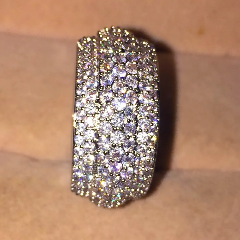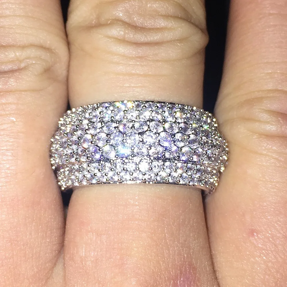 HOT Sale choucong Jewelry Luxury 925 Sterling Silver Pave Seven rows Full 360PCS 5a Zircon Cocktail rings fo