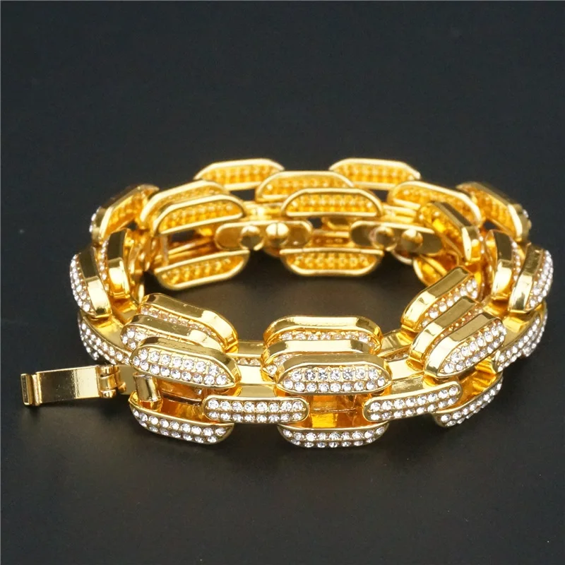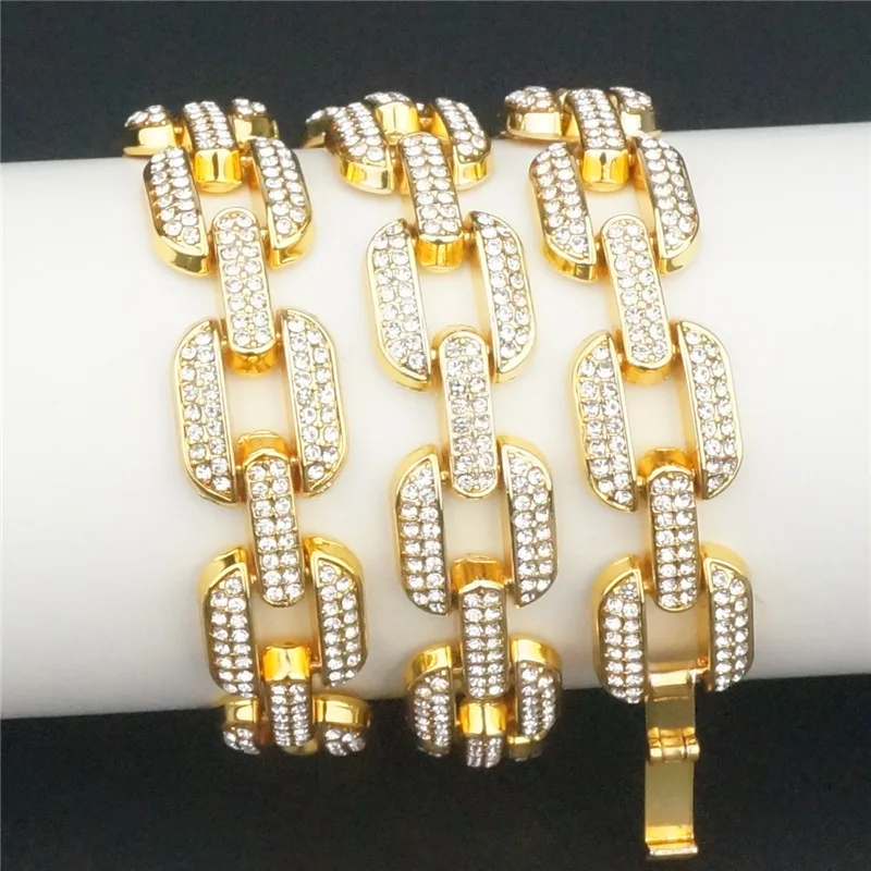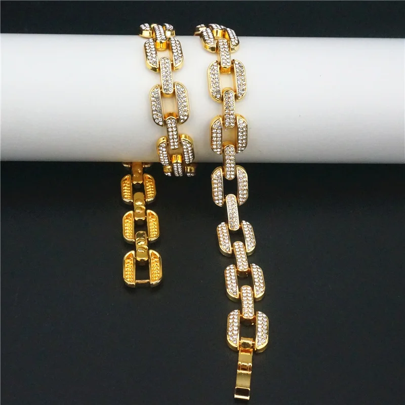 Ice out men's gold full zircon hip hop Miami Cuba chain necklace fashion charm chain jewelry