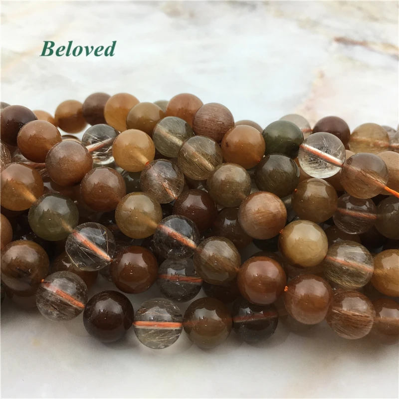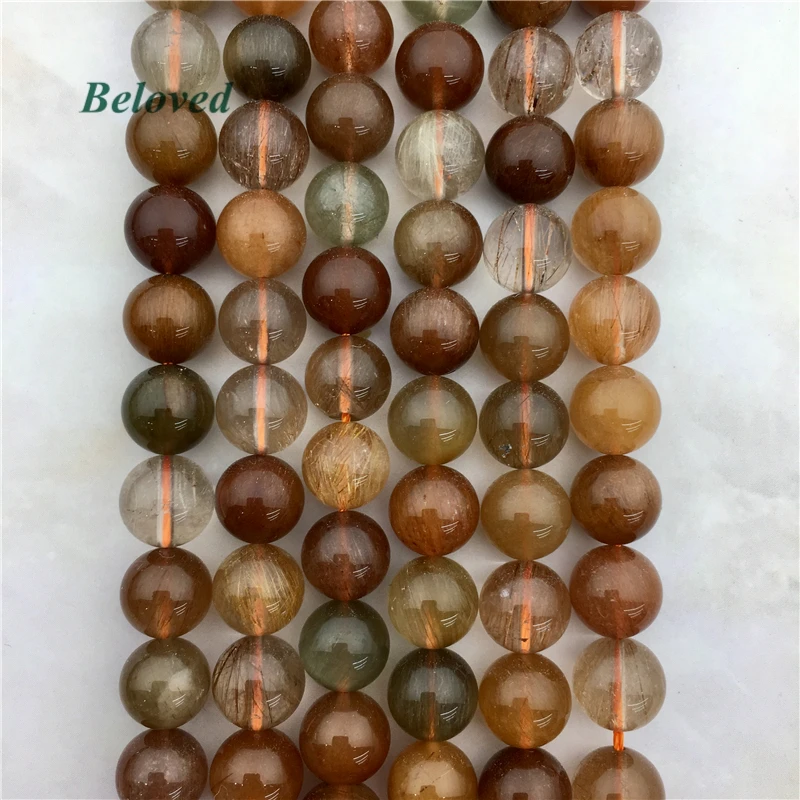 REVIEW TOP SELLER Top Quality Round Rutilated Quartz Loose Beads Smooth Hairstone Divergent Crystal Gems Bead For Jew