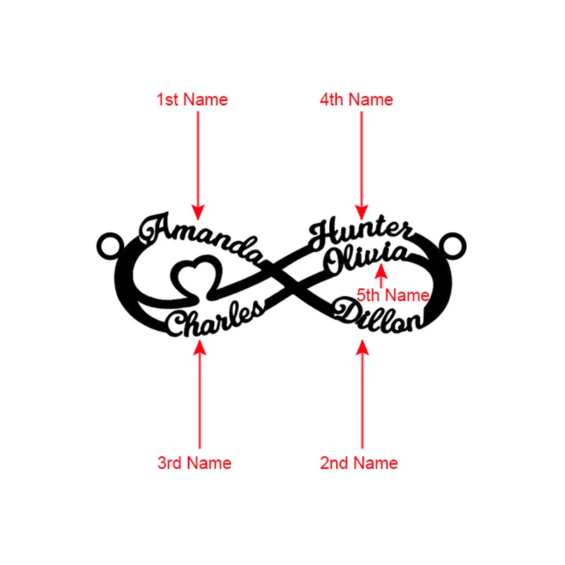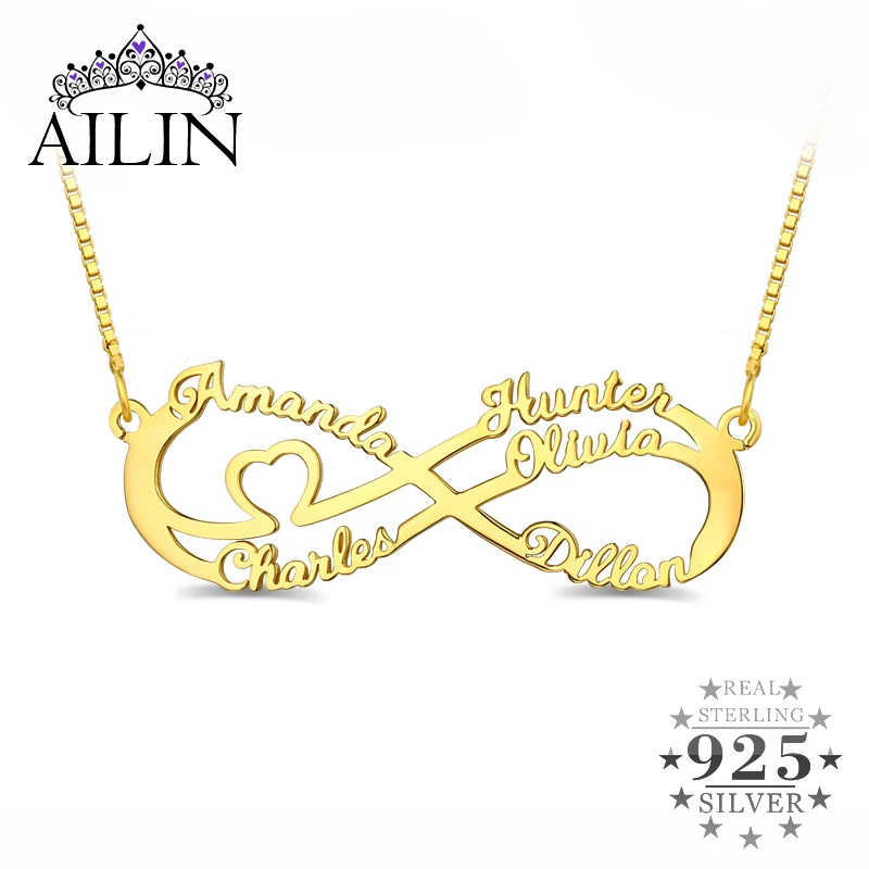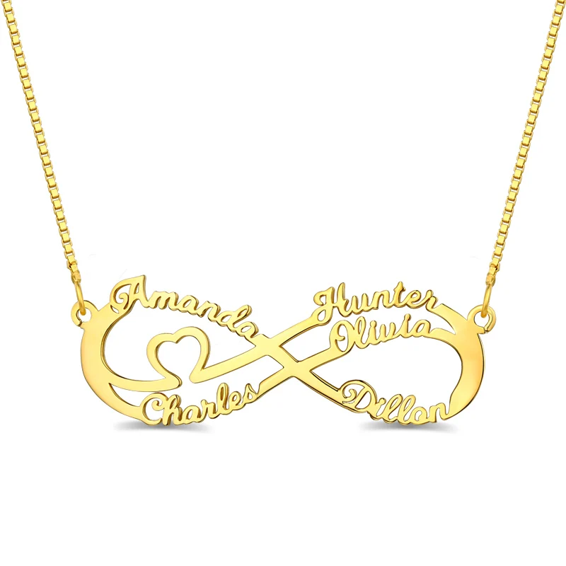 Best Wholesale Women Gold Heart Infinity Necklace with 5 Names For Her Lady Name Infinity Jewelry For MO