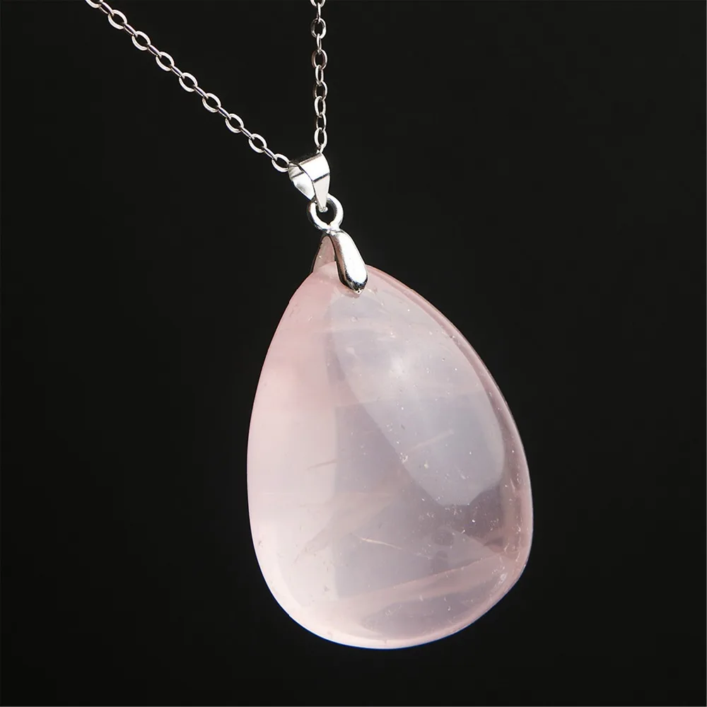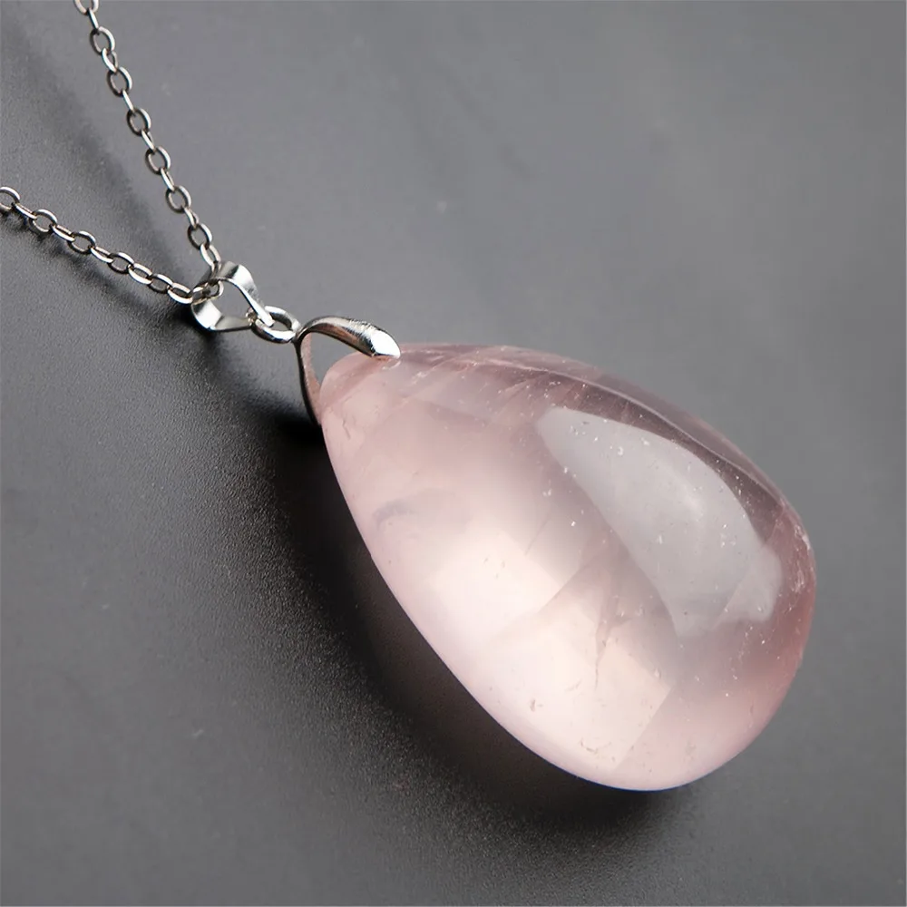 HOT SALE Genuine Natural Rose Pink Quartz Crystal Stone Water Drop Shape Pendant Necklace For Jewelry Making